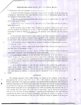 The document is a notification from the Government of Maharashtra revising the minimum wage rates for employees in the engineering industry. It revises the minimum monthly wages for skilled, semi-skilled and unskilled workers across three zones, with Zone I having the highest rates and Zone III the lowest. The notification provides explanations of the zones and definitions of skilled, semi-skilled and unskilled labor. It also outlines how daily and hourly wages will be calculated from the monthly rates. The changes to minimum wages are effective from March 3, 2014.