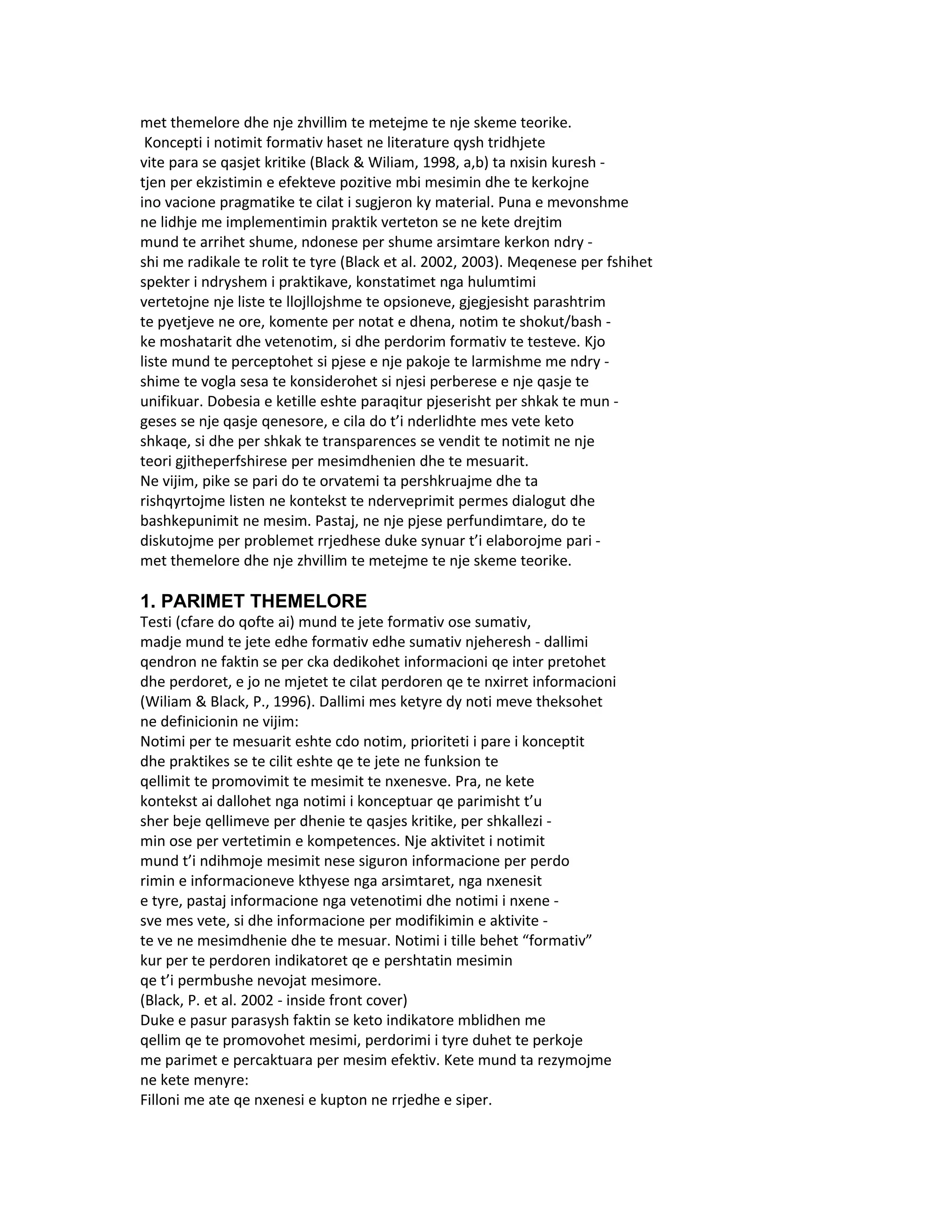 vite para se qasjet kritike (Black & Wiliam, 1998, a,b) ta nxisin kuresh -