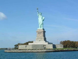 Este documento menciona algunos de los monumentos más famosos del mundo como la Estatua de la Libertad en Nueva York, las Pirámides de Egipto, la Gran Muralla China, la Torre Eiffel en París, el Coliseo en Roma y el Buckingham Palace en Londres.