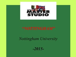Nottingham è una città storica nel Regno Unito, facilmente accessibile e con una vivace scena culturale. Il documento fornisce informazioni essenziali per il viaggio, inclusi requisiti di documentazione, suggerimenti per il bagaglio e dettagli sui corsi di lingua e attività programmate durante il soggiorno. Sono inclusi anche dettagli sui costi e poli assicurativi per una vacanza studio che prevede corsi di lingua e visite turistiche.