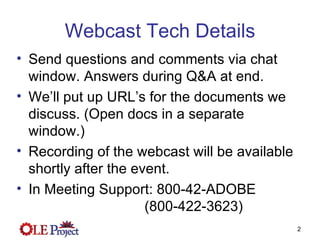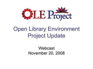 1. This document summarizes an update webcast about the Open Library Environment Project held on November 20, 2008.