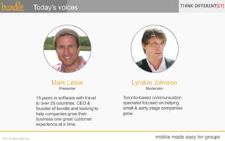 The document discusses the significant impact of mobile technology on group travel, emphasizing the evolving expectations and behaviors of travelers who increasingly rely on mobile devices for planning, booking, and managing their trips. It highlights both the challenges and opportunities that mobile connectivity presents for travel businesses, encouraging them to adapt their services accordingly to enhance customer experiences and engagement. The presentation also outlines various stages of the traveler process where mobile can be leveraged, from pre-trip preparation to post-trip follow-up.