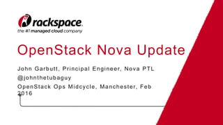 The document outlines updates and priorities for OpenStack Nova as discussed by John Garbutt during the OpenStack Ops Midcycle event in February 2016. Key focuses include a robust API, enhancements to the upgrade process, and the evolution of the API through microversions. It also addresses issues related to live migration and the architecture improvements aimed at maintaining system reliability and scalability.