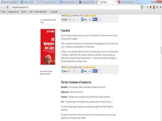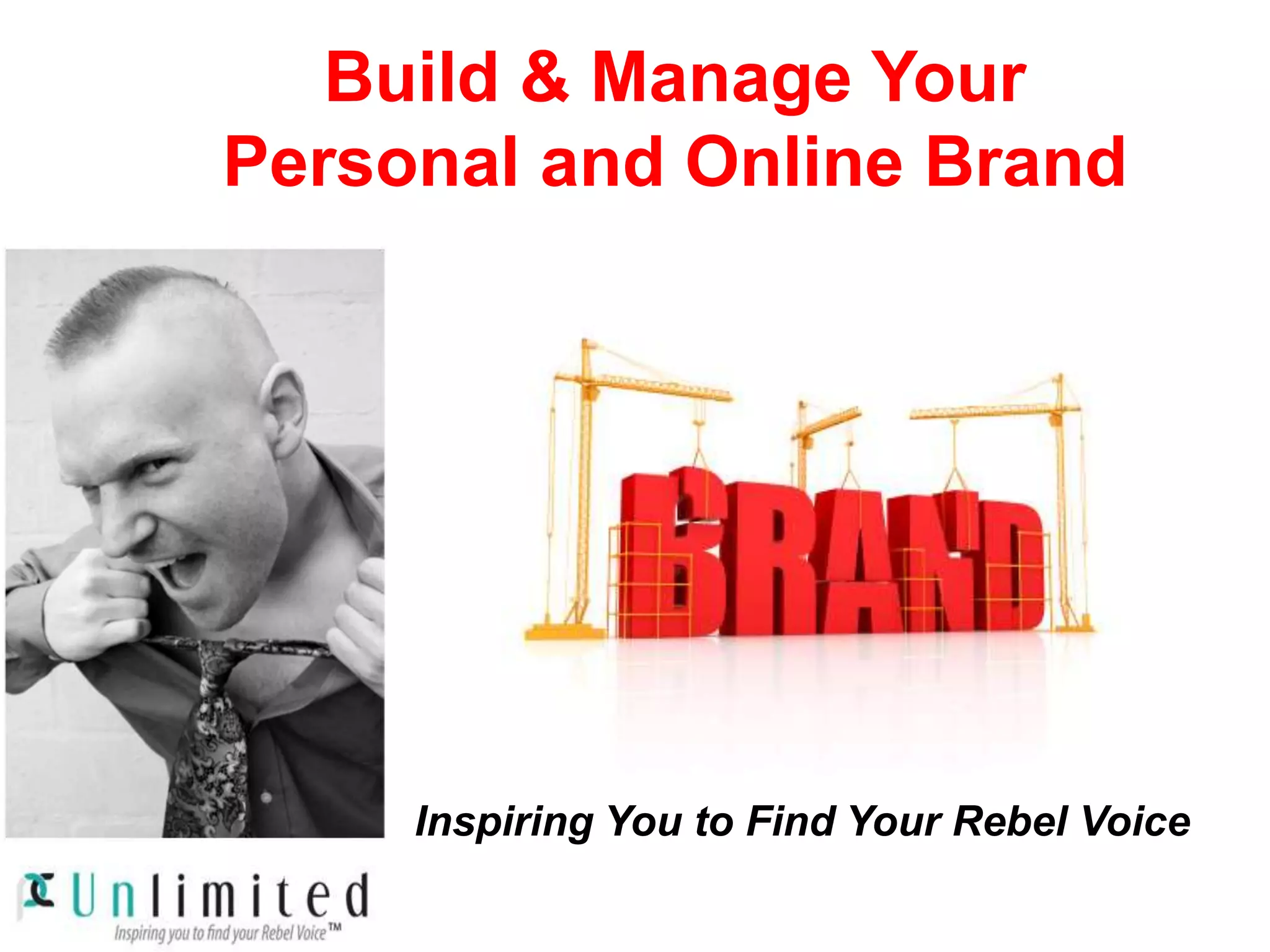 This document discusses how to build and manage a personal brand through finding one's "rebel voice." It outlines a 5 step formula for developing a personal brand statement, communicating your brand online and offline, and creating an action plan. The goal is to stand out from others in your field by defining your unique skills, experience, and values to potential clients or employers.