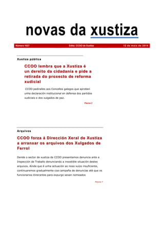 Número1027 Edita: CCOO de Xustiza 12 de maio de 2014