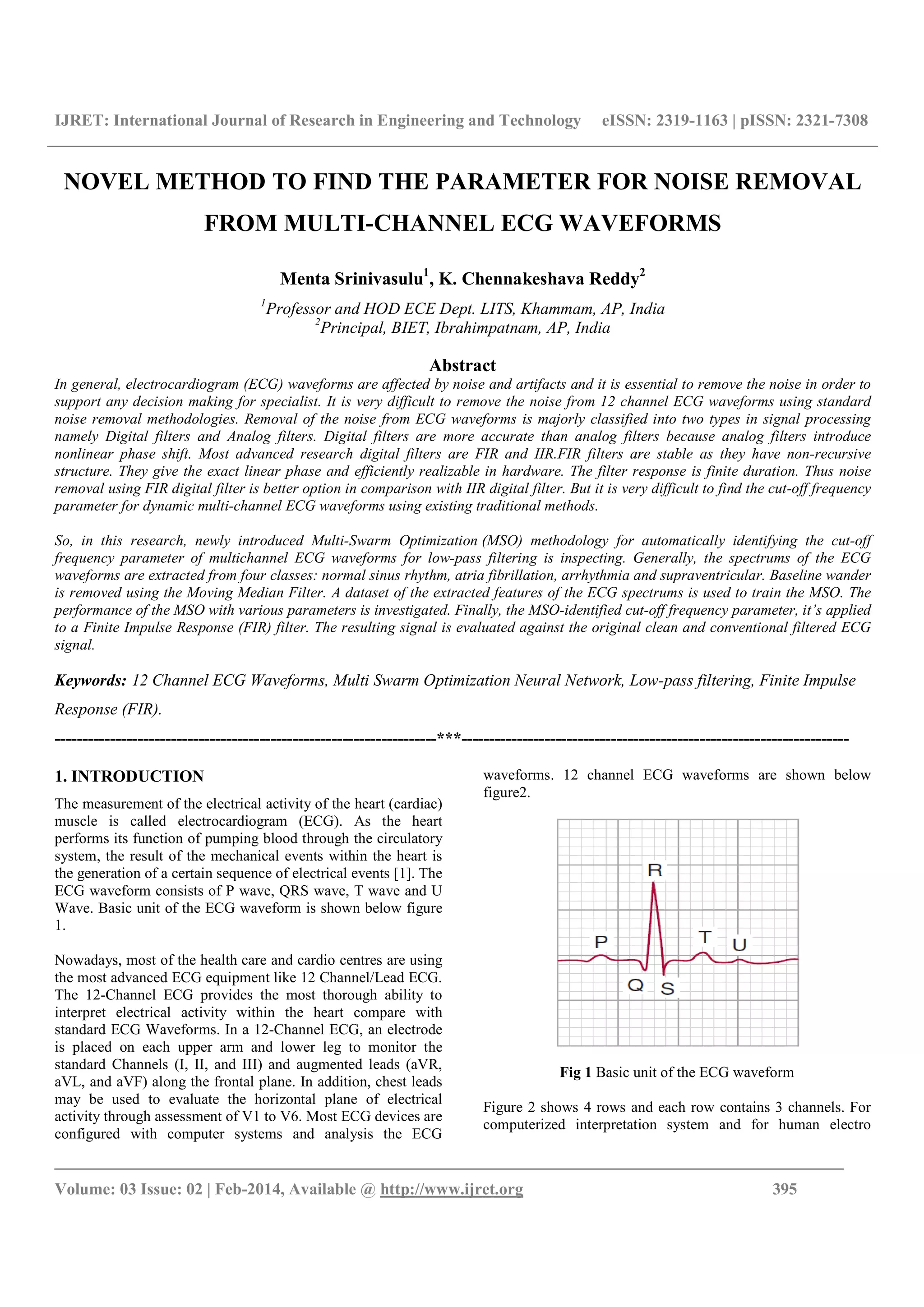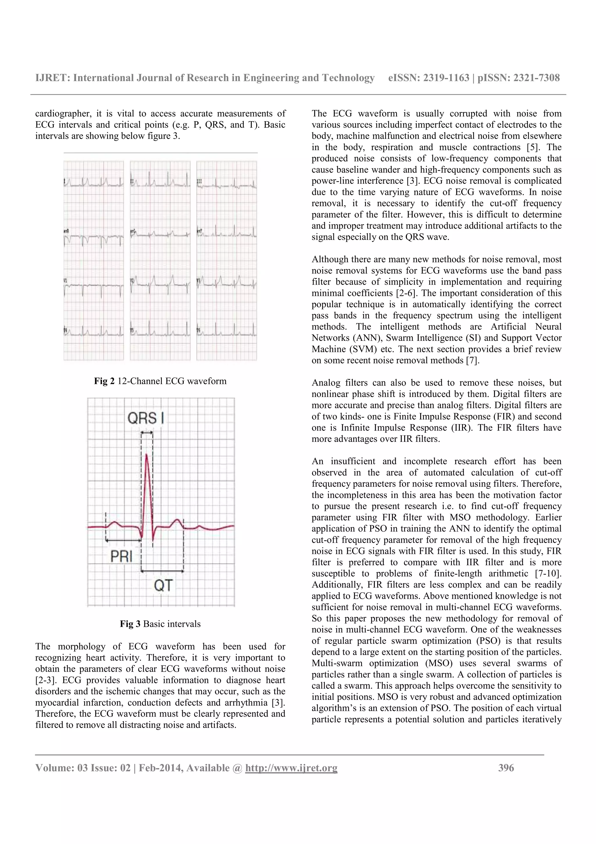 The document presents a novel approach using Multi-Swarm Optimization (MSO) for efficiently determining the cut-off frequency parameters necessary for noise removal from multi-channel electrocardiogram (ECG) waveforms. It emphasizes that traditional methods struggle with the complexities of dynamic multi-channel ECGs and that FIR filters, enhanced by MSO, provide a more effective solution for achieving clear ECG signals. The study involves testing data from various ECG databases to demonstrate the methodology's effectiveness in removing noise while preserving critical cardiac information.