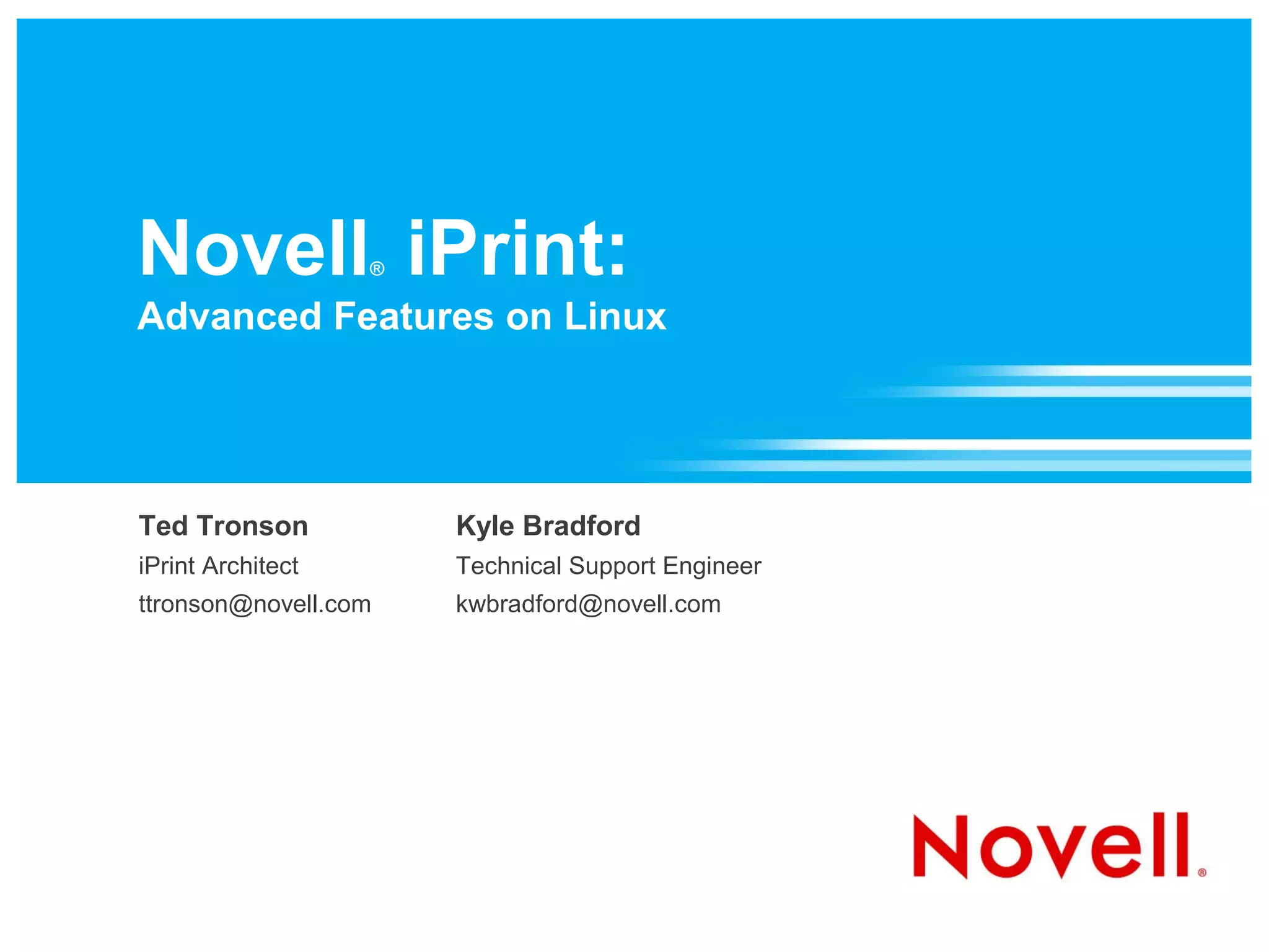 The document discusses advanced features of Novell iPrint for Linux, including Windows 7 support, printer driver profiles, and auto driver updates. Key topics include the iPrint troubleshooting tool, accounting options, mass management, and the migration procedure for printer objects. It highlights the importance of configuration tools and provides best practices for effective iPrint administration.