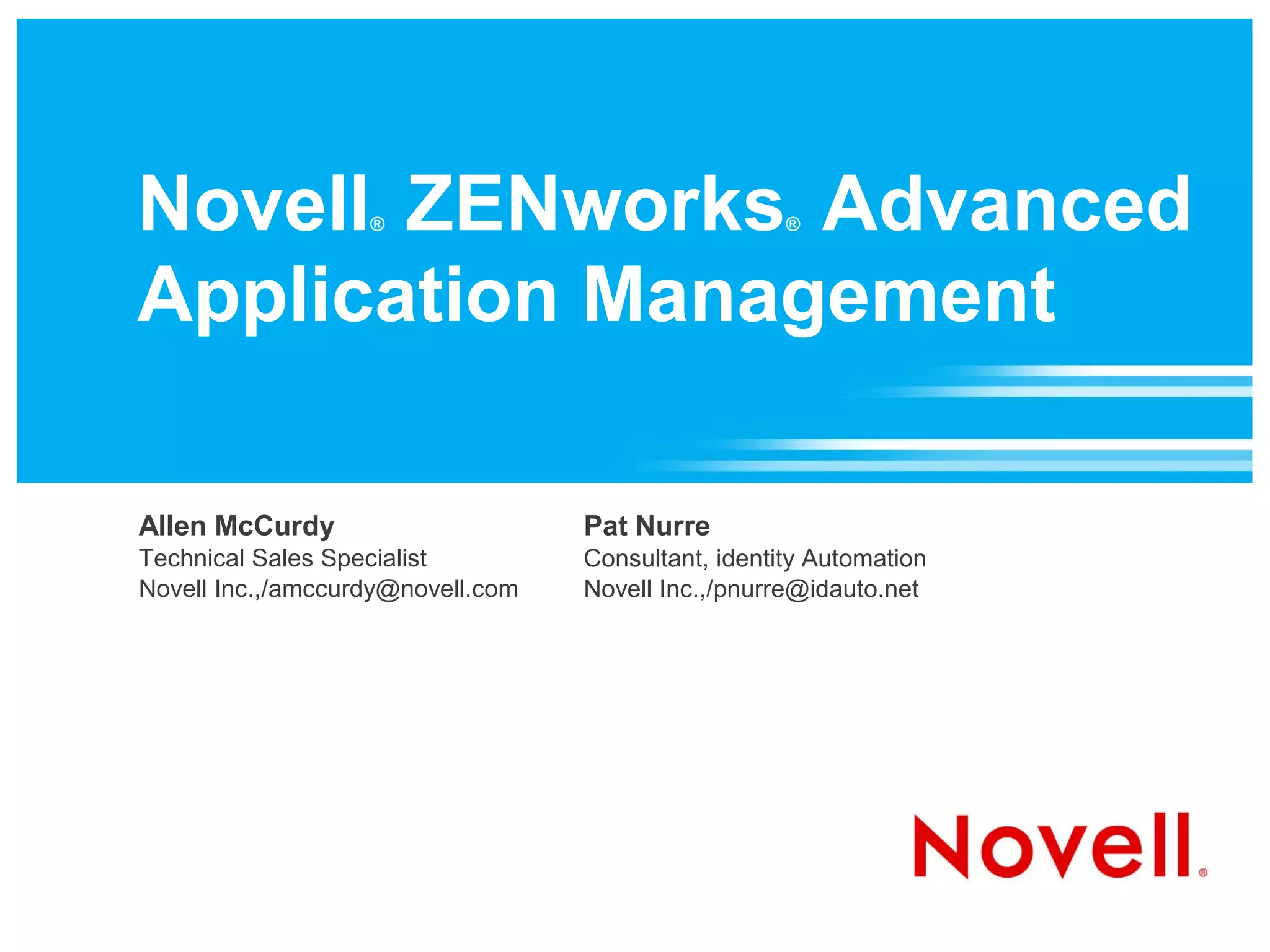 The document outlines the fundamentals of Novell Zenworks Advanced Application Management, focusing on bundle types such as directive, file, imaging, and windows bundles. It details the creation, management, and scheduling of bundles, including distribution and launch schedules, as well as content delivery processes. Additionally, it emphasizes the importance of structure, security, and event scheduling in managing application bundles effectively.
