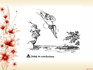 This document outlines the agenda for an English class, including a discussion of the idiom "jump to conclusions" and forming novel discussion groups. Students will take turns summarizing what they read in their assigned sections and answering discussion questions as preparation for an upcoming quiz. Homework includes a novel quiz and a reading test on Monday.