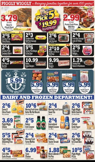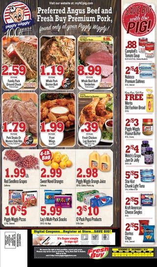 This document provides information about sales and promotions at Piggly Wiggly grocery stores, including: