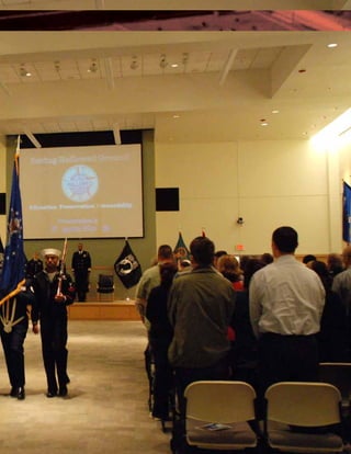 In November 2013, Marines and support personnel at NSA Philadelphia celebrated the Marine Corps birthday and participated in Operation Gratitude, collecting 4,435 lbs. of care package items for deployed service members, marking a significant increase from the previous year. The event involved 51 volunteers from various military organizations and aimed to enhance community engagement and support for those in service. Additionally, the document highlights pedestrian safety protocols, upcoming activities, and features a poignant presentation by a wounded warrior during Disability Employment Awareness Month.