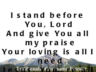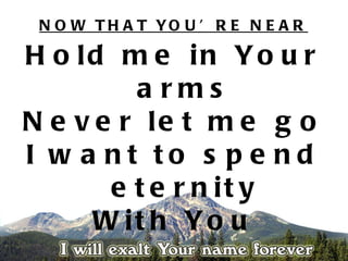 The document appears to be lyrics for a worship song praising God. It expresses wanting to spend eternity with God, giving God all praise and life, and knowing life is different now with God's presence and love. The chorus reiterates that everything is different now that God is near.