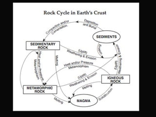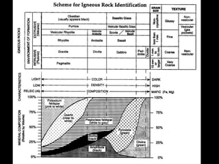 Igneous rocks form from the solidification and crystallization of molten rock. The texture of an igneous rock depends on the size, shape, and arrangement of its mineral crystals, which is determined by the rock's cooling rate. Extrusive igneous rocks cool and solidify quickly at the Earth's surface, resulting in fine-grained or glassy textures, while intrusive igneous rocks cool slowly beneath the surface, forming coarse-grained textures.