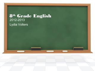 This document provides information about Lydia Volters' 8th grade English class at New Harmony School for the 2012-2013 school year. It includes details about the school and class demographics, standardized test scores in English for 8th graders, the units planned to be taught throughout the year, and a sample unit on poetry portfolios.