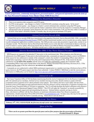 2) It discusses the transition of enlisted service records to a paperless Electronic Service Record system accessible online.