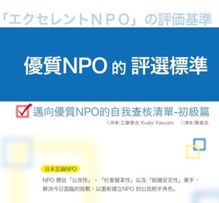 推薦日本言論 NPO(Genron NPO)2 在 2010年出版的「優質 NPO的