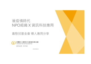 文档探讨了后疫情时代非营利组织(NPO)如何运用信息科技进行转型,尤其是喜憨儿基金会的实践。重点内容包括在线服务、云端协作以及如何利用大数据分析改善组织形象和服务效率。整体强调了科技与人性结合的重要性,以适应新的社会经济环境。