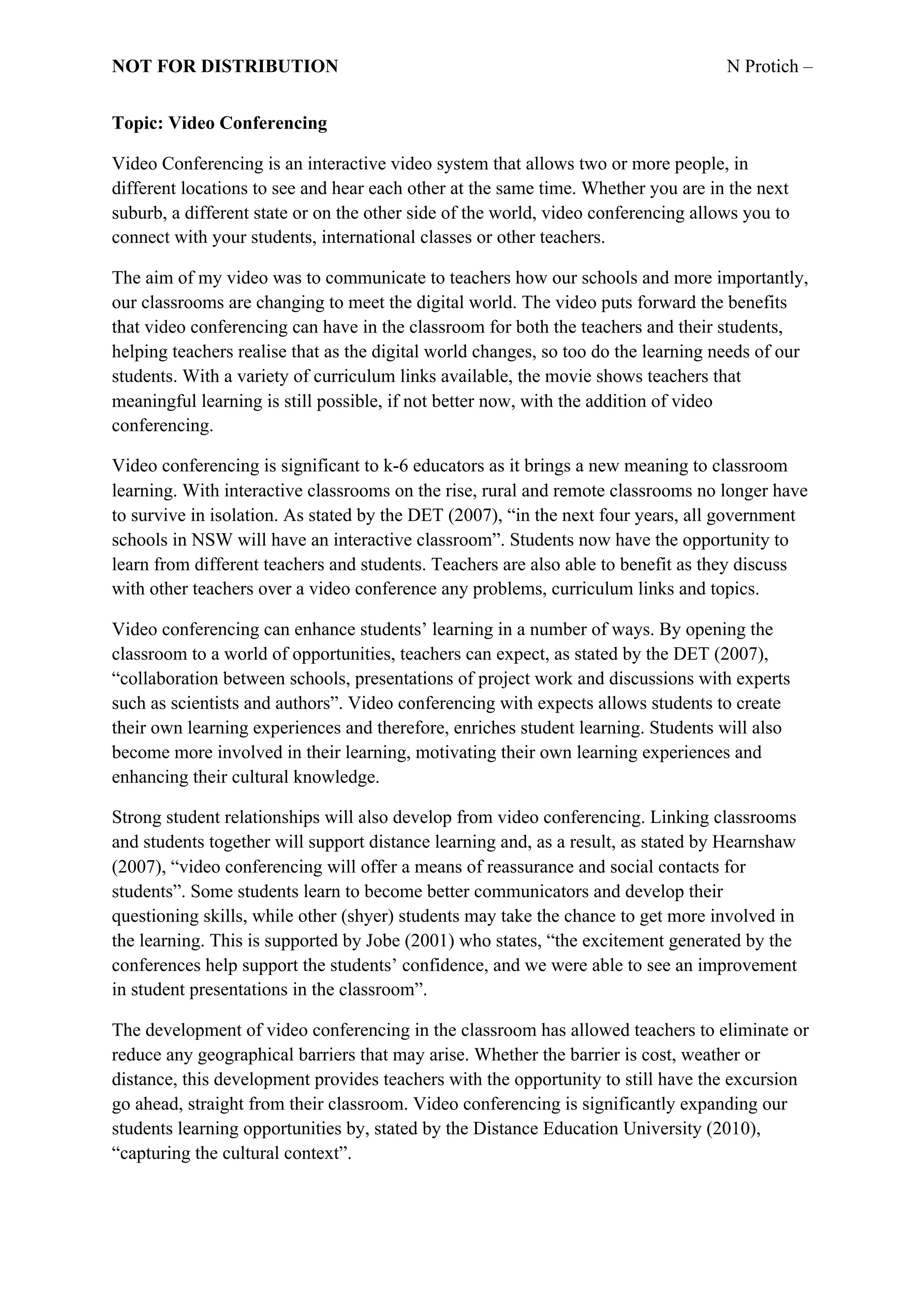Video conferencing allows people in different locations to see and hear each other simultaneously. The document discusses how video conferencing benefits teachers and students in classrooms. It allows collaboration between schools, presentations from experts, and discussions between teachers. Students have opportunities to learn from different teachers, present to other classes, and develop relationships. Several studies found video conferencing enhanced language learning and increased access to learning opportunities. While it may take adjustment, video conferencing has the power to inspire, connect, and motivate students when utilized effectively by teachers.