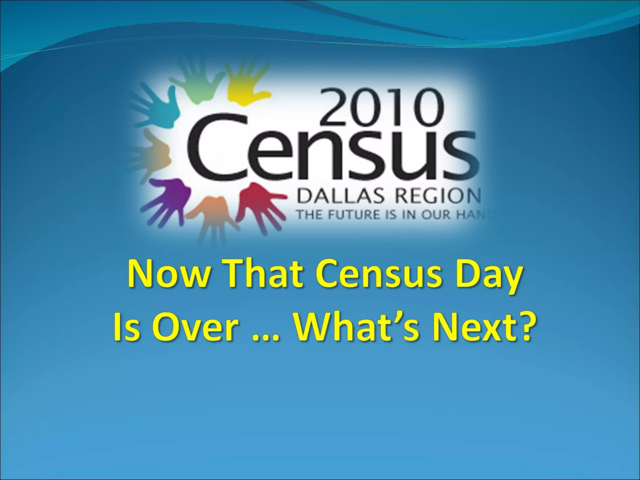 The document provides an overview and timeline of the 2010 Census process. It discusses that the Census is currently in the Non-Response Follow Up phase, where Census workers visit households that did not return their questionnaire to conduct interviews. It outlines that this phase runs from May 1 to July 10, 2010. It also notes that local Census offices will close between September and October 2010, and that most detailed Census data will be released to communities by March 2011.