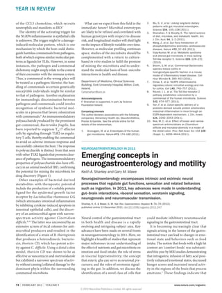 1) Studies showed that gut microbes and nutrients can affect mood and food intake through the vagus nerve and endocannabinoid signaling. Stress was also found to exacerbate visceral pain through changes in primary afferent neurons and spinal glia.