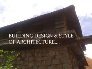Nritya gram is India's first dance village, established in 1990 by odissi dancer Protima Gauri. It follows a vernacular architectural style designed by Gerard da Cunha. Vernacular architecture is locally-influenced and evolves over time based on the environmental, cultural, and historical context. An example is the temple at Nritya gram's entrance, built in 1998 from raw local mud and decorated with dance motifs. The buildings emphasize natural ventilation and make use of stone masonry, arches, and columns without mortar.