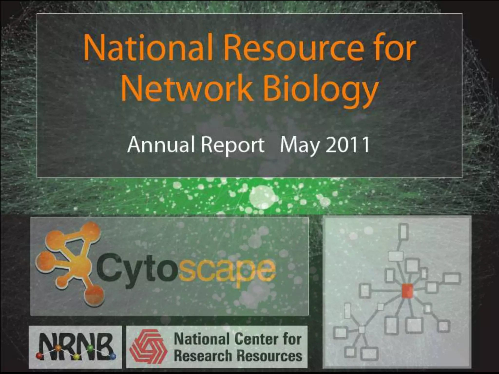 The National Resource for Network Biology aims to provide freely available, open-source software tools to enable researchers to assemble biological data into networks and pathways and use these networks to better understand biological systems and disease; it pursues this mission through technology research and development projects, driving biological projects, collaboration and service projects, training, and dissemination; key components include the Cytoscape software platform, supercomputing infrastructure, and partnerships with over 30 external research groups.