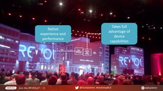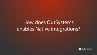 The document discusses the advantages of OutSystems in leveraging device capabilities for a native experience and improved performance. It emphasizes the importance of native integrations within the framework. Multiple links are provided for further information.