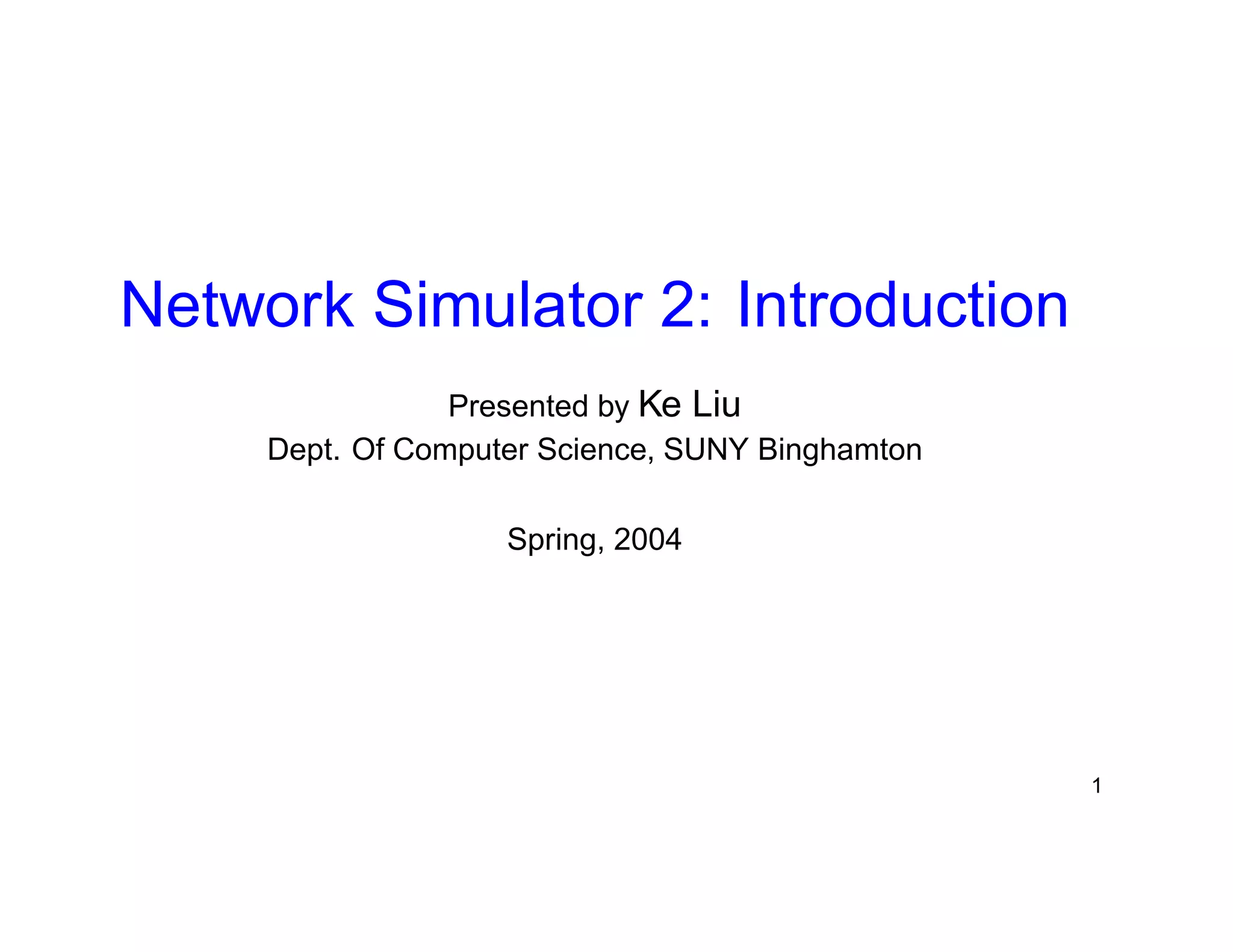 This document provides an overview of Network Simulator 2 (NS-2), an open-source discrete event network simulator targeted primarily for networking research and education. NS-2 was developed at UC Berkeley and is maintained by USC. It supports simulation of TCP, routing, and wireless protocols and includes models for network traffic, queues, and links. NS-2 uses both C++ for implementation of protocols and OTcl for configuration of simulation scenarios, allowing for detailed and flexible simulations. The document outlines the goals, architecture, usage, and extension of NS-2.