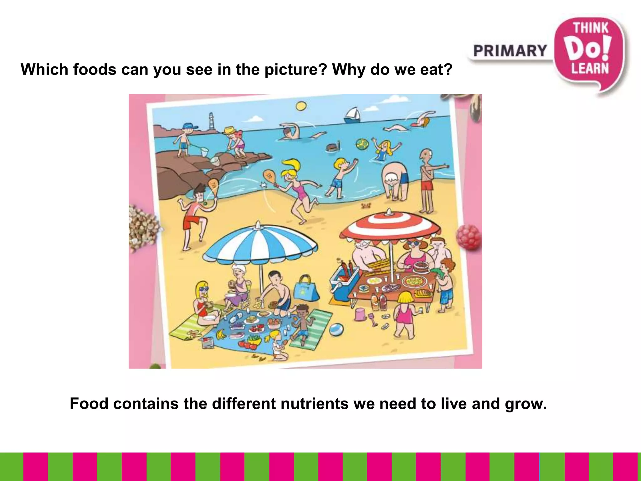 The document discusses the human digestive and excretory systems. It explains that foods contain nutrients like carbohydrates, fats, proteins, minerals, and vitamins that our bodies need. The digestive system breaks down food and absorbs these nutrients, while the excretory system removes waste. Maintaining a balanced diet and practicing good hygiene are important for overall health.