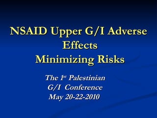 The document discusses the risks of upper gastrointestinal adverse effects from NSAID use. It summarizes that: