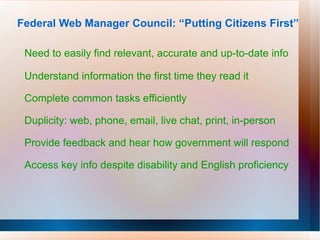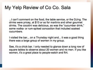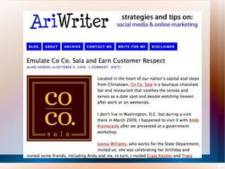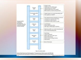 The document provides an overview of the topics that will be covered in an online class about social media marketing. It asks questions about blogs, Facebook, and Twitter and how organizations are using each platform. It indicates that during the class they will review websites and blogs, learn about commenting, and explore the differences between Facebook profiles, groups and pages as well as Twitter updates, mentions and replies. It also notes that a volunteer will be asked to clap their hands to demonstrate rhythm.