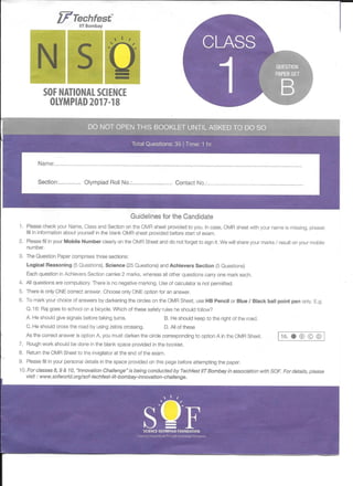 Science Olympiad for Class 1. This is Set B. When my kid appeared for the exam, I found it difficult to get any question paper. Hence sharing it so that it benefits other parents. Note that all answers are marked. I didnot have time to erase. It would still have left some mark ;)