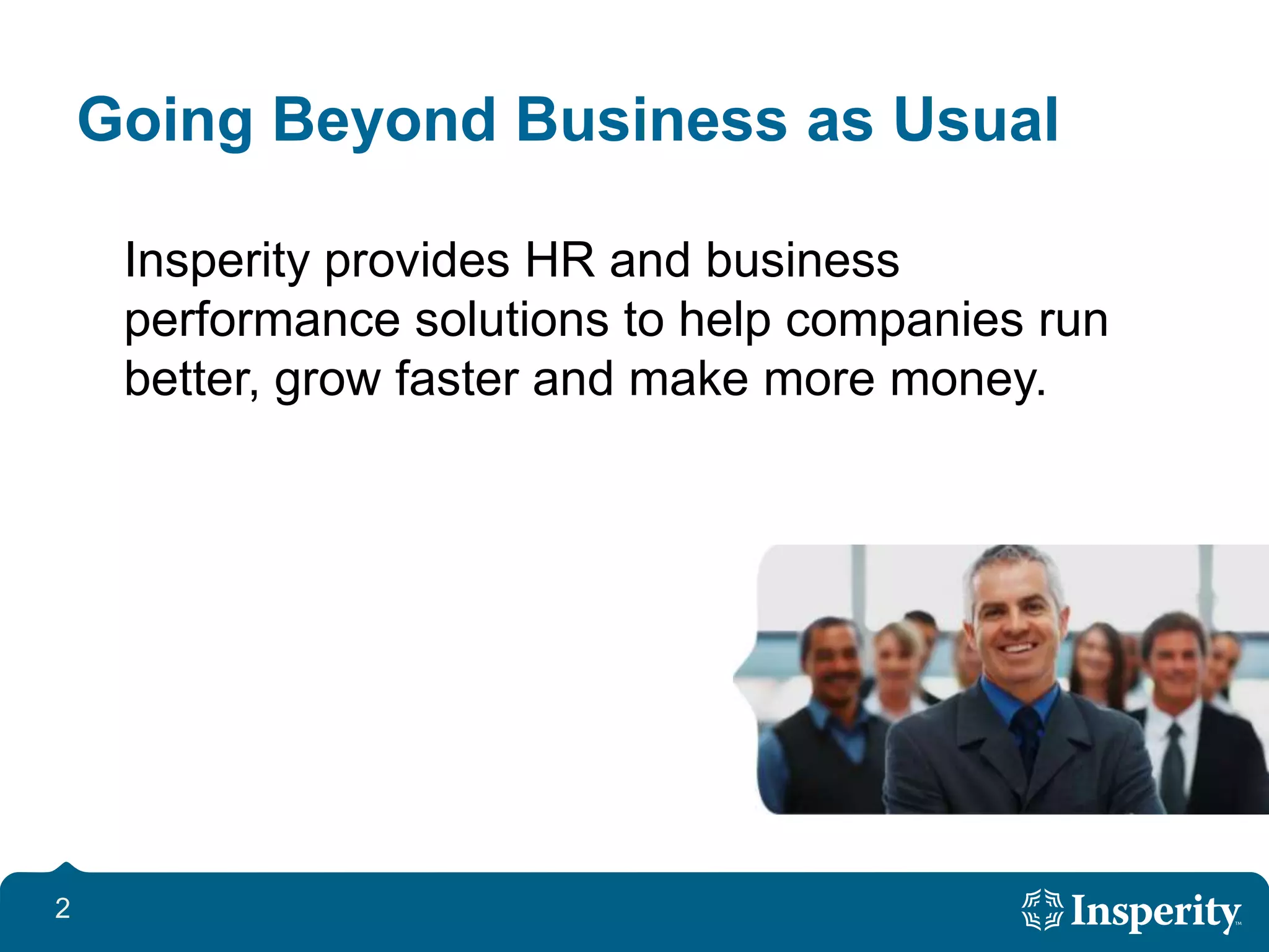 Insperity provides HR and business performance solutions to help companies run better, grow faster and make more money. Founded in 1986 and listed on the NYSE, Insperity supports over 100,000 businesses and 2 million employees nationwide. Insperity's Workforce Optimization solution delivers increased productivity, reduced administrative burdens and liabilities, and better benefits through co-employer services that allow businesses to focus on growth while Insperity handles HR functions.