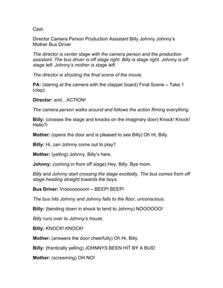 assistant. The bus driver is off stage right. Billy is stage right. Johnny is off