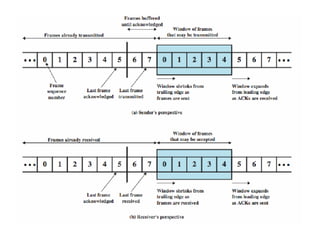 3) Error detection techniques used at the data link layer include parity checks, checksums, and cyclic redundancy checks (CRCs) to detect errors, while error correction codes like Hamming codes can detect and correct errors. Framing identifies packet boundaries through