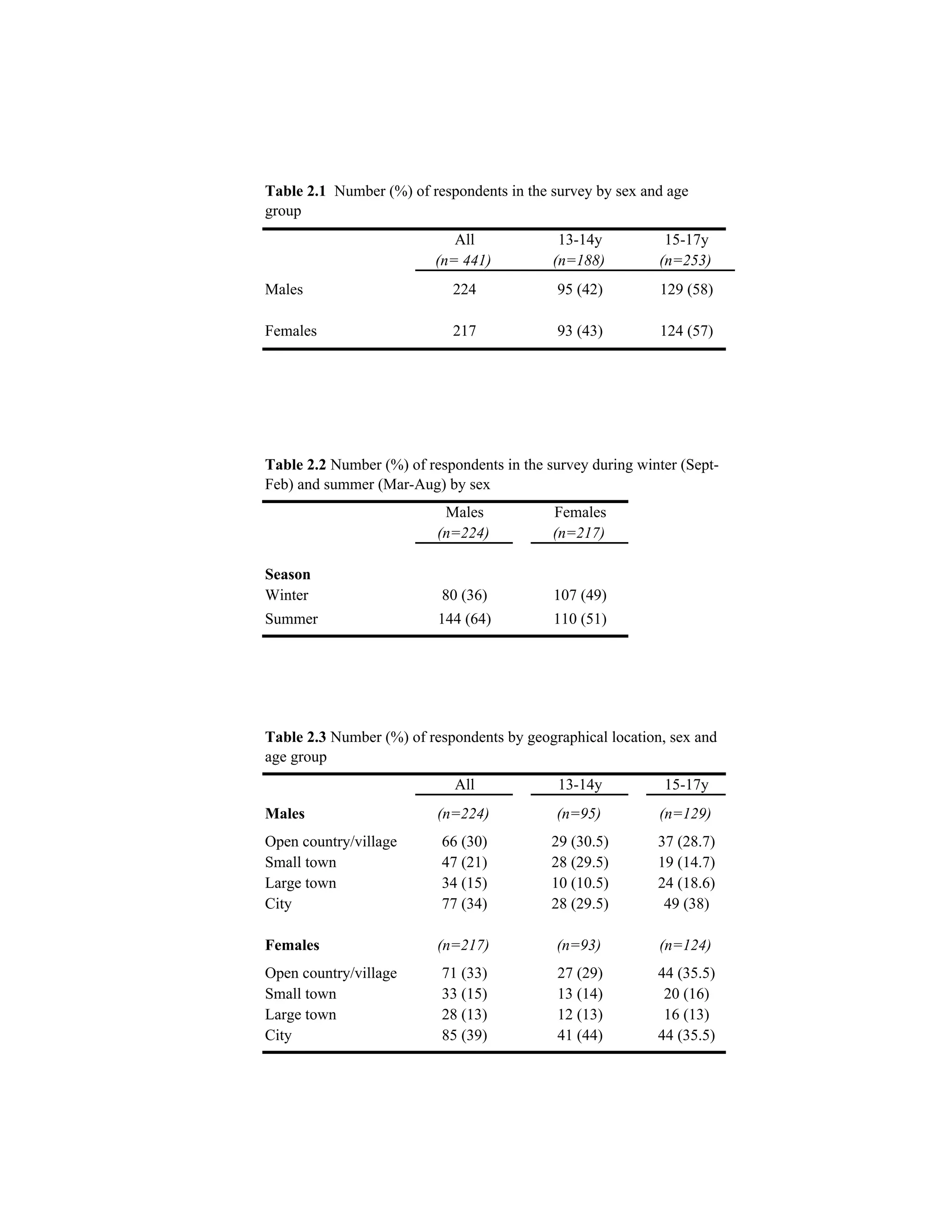 The document contains 9 tables that present demographic data from a National Teens' Food Survey (NTFS) conducted in Ireland. The tables show characteristics of survey respondents such as age, sex, geographic location, socioeconomic factors, and parents' education levels. The data is also compared to corresponding census data from Ireland to show similarities between the survey respondents and the overall Irish population.
