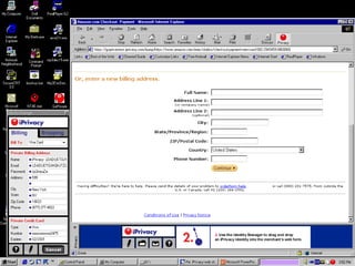 The document discusses various online privacy technologies and tools that can help protect user privacy and allow for more anonymous online activity. It describes technologies like anonymizing proxies, mix networks, onion routing, crowds, and encryption tools that help shield users' personal information and browsing activities from websites, advertisers, and other third parties. It also covers tools for filtering cookies and browser data, managing online identities, and reading websites' privacy policies. The goal is to provide an overview of the technical options available to help safeguard user privacy online.