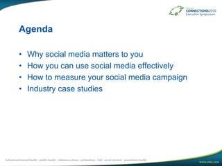 This document discusses using social media effectively for behavioral healthcare. It outlines how social media can empower patients and providers to share information. Key points include:
