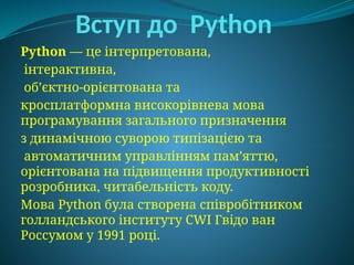 Інтерактивний режим. Python підтримує інтерактивний режим, який дозволяє інтерактивно