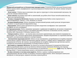 програмування. Він має велику та активну спільноту користувачів. Легко знаходити навчальні