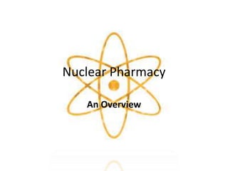 A nuclear pharmacy compounds and dispenses radioactive materials called radiopharmaceuticals that are used in nuclear medicine procedures. Nuclear pharmacists must be licensed by the Nuclear Regulatory Commission and undergo extensive training in compounding radiopharmaceuticals and radiation safety. They provide radioactive materials to hospitals, clinics, and physician offices to diagnose and treat medical conditions.