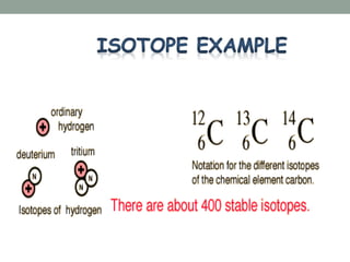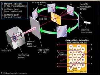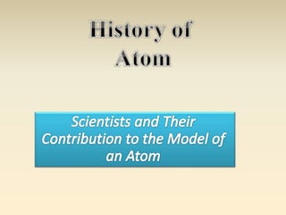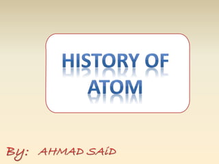 - The atomic model has evolved over time based on new evidence and experiments. Early thinkers proposed ideas including Democritus' atomic theory of small indivisible particles. John Dalton later proposed atoms of different elements have distinct properties. J.J. Thomson discovered the electron and proposed the plum pudding model. Rutherford's gold foil experiment showed the atom's small, dense nucleus. Niels Bohr incorporated electron orbits into his model. Later, Schrodinger and others developed the concept of electron clouds. Chadwick discovered the neutron in 1932, completing the standard atomic model.