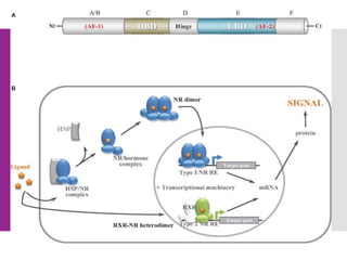 Nuclear receptors are ligand-regulated transcription factors activated by steroid hormones and other lipid-soluble signals, influencing gene expression and metabolic enzymes. They are classified into three classes: Class 1 predominantly includes steroid hormone receptors, Class 2 involves receptors for lipid ligands in the cell, and Class 3 plays roles in endocrine signaling. The malfunctioning of these receptors is linked to various illnesses.