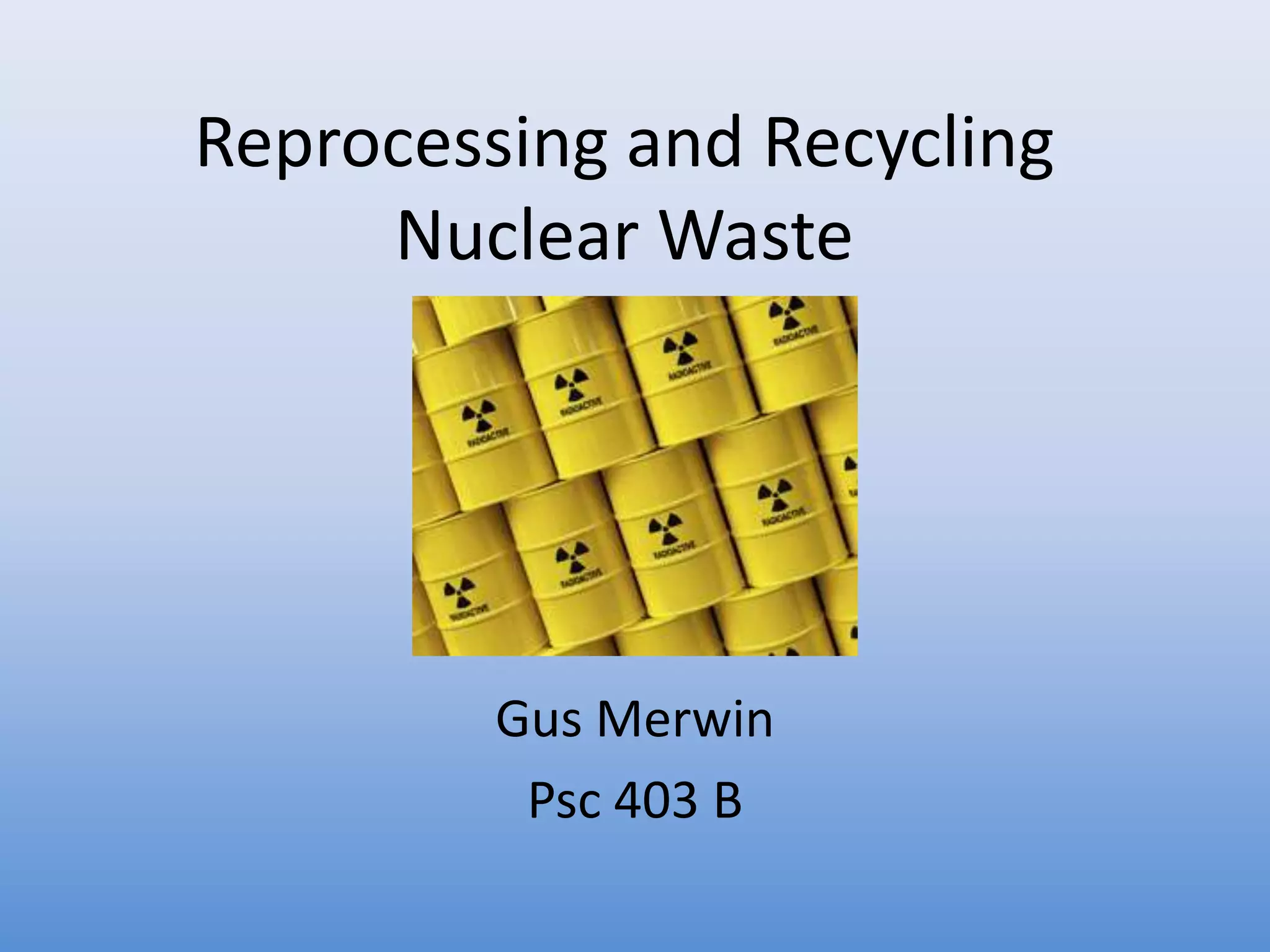 Reprocessing and recycling nuclear waste has several benefits: it reduces the volume of waste, extends the safe storage time of waste from millions of years to hundreds of years, and extracts usable material from the waste to generate additional energy. While reprocessing can produce weapons-grade plutonium, newer proliferation-resistant methods like pyroprocessing are being developed. The document recommends funding research into cost-effective reprocessing methods and beginning construction of a reprocessing facility within the next 10 years along with a mixed-oxide fuel fabrication plant and pebble bed fast neutron reactor to fully realize the benefits of reprocessing nuclear waste.
