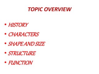 The document discusses the cell nucleus, providing details on its history, characteristics, structure, and functions. It describes how the nucleus was discovered in 1831 and named by Robert Brown. The nucleus is a membrane-bound organelle found at the center of eukaryotic cells that can vary in shape and size depending on the cell. It houses genetic material in the form of chromatin and chromosomes and directs protein synthesis, cell growth and regulation, and transportation between the nucleus and cytoplasm. The nucleus contains a nuclear membrane, nucleolus, chromatin, and DNA and serves as the command center of the cell.