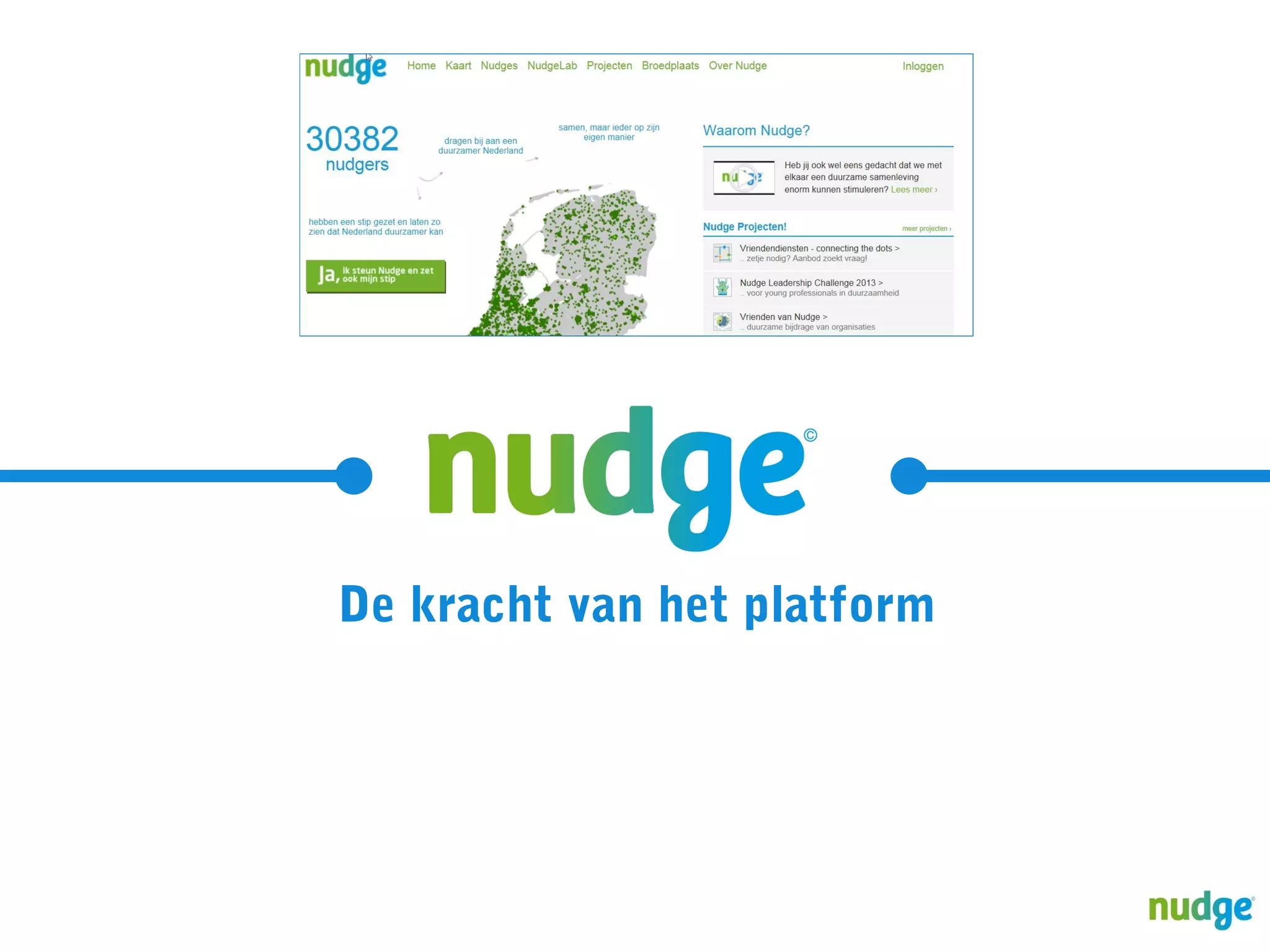 Voor bedrijven en organisaties die duurzame stappen willen zetten, ontwikkelde Nudge een krachtig, uitdagend en effectief concept om impact te genereren: de Nudge Challenge. Voor meer informatie check https://www.nudge.nl/projecten/50-nudge-challenges/246.