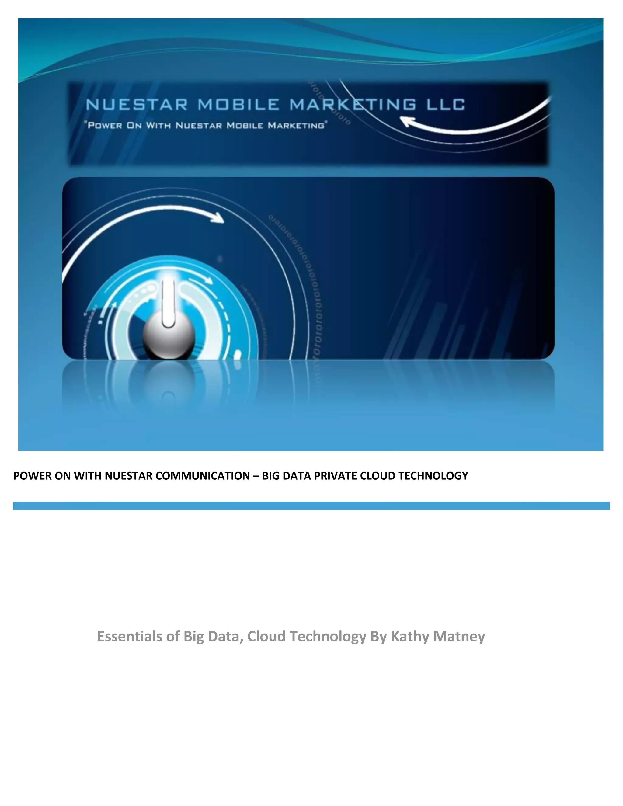 Nuestar Communications provides big data and cloud technology solutions to help organizations analyze large datasets and extract value from data. Their platform allows for tightly coupled data integration across various data sources and analytics to support the entire big data lifecycle. Nuestar helps clients address challenges around managing large and varied data, determining what data is most important, and using all of their data to make better decisions.
