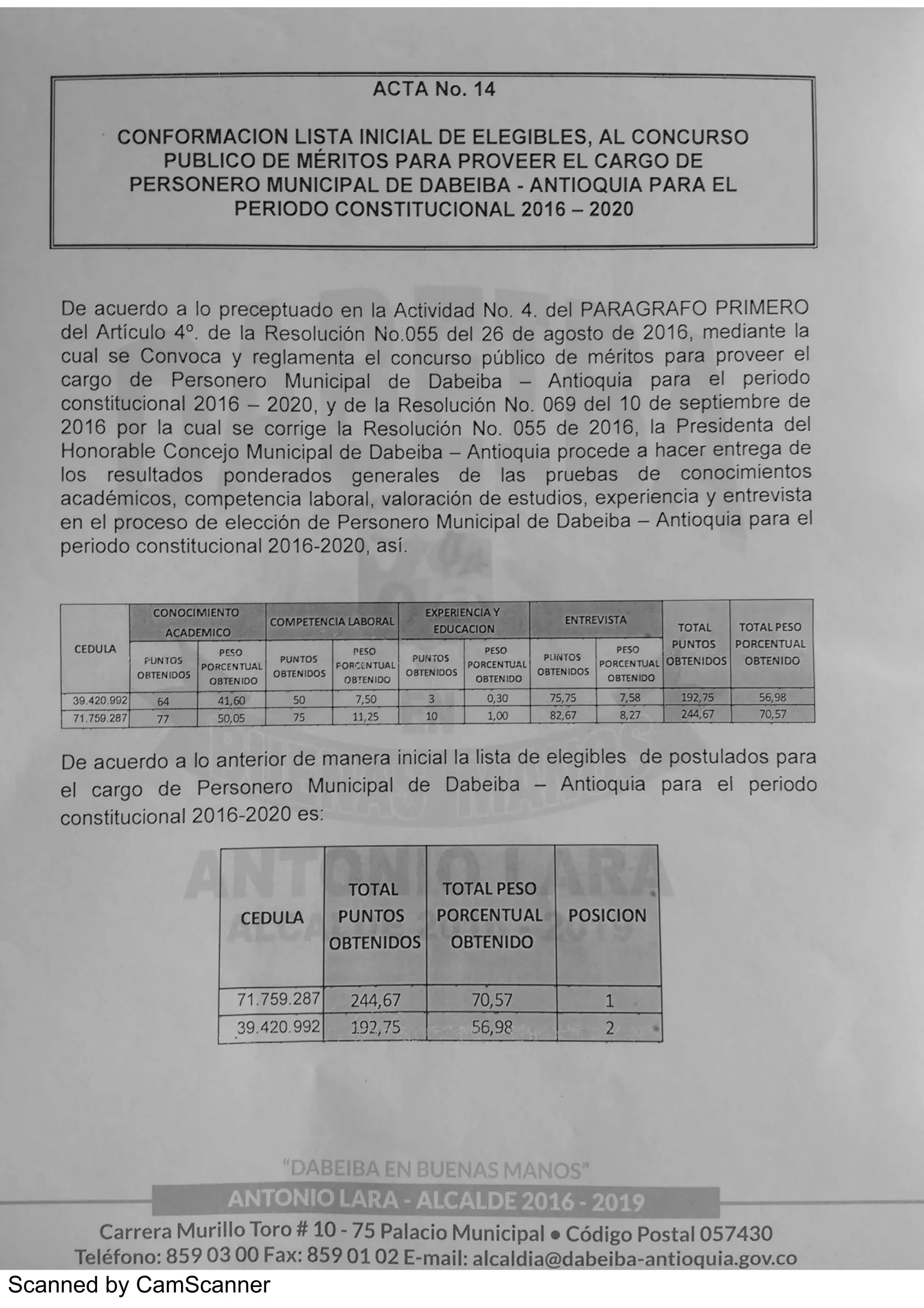 Modelo de formato personería 2016