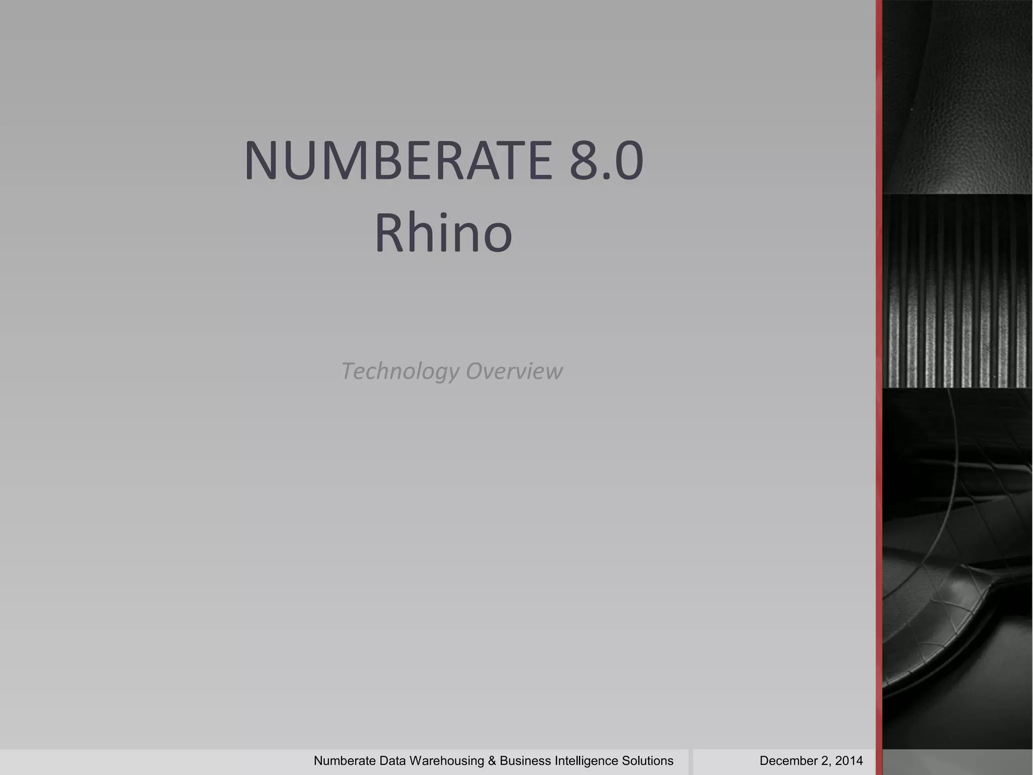 The Numberate Rapid Warehouse Solution is a flexible and cost-effective data integration tool designed to enhance business intelligence and meet the diverse needs of corporate and government clients. It emphasizes automation, rapid implementation, and support for business-driven processes while providing options for data warehousing without imposing rigid upgrades. This solution supports parallel processing and includes features for managing metadata, integration, and data quality to streamline ETL processes.