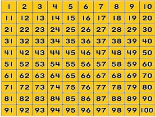 This document defines and provides examples of different types of numbers including: whole numbers, even numbers, odd numbers, prime numbers, composite numbers, rectangle numbers, square numbers, cube numbers, and triangle numbers. It also briefly describes Fibonacci numbers and the Fibonacci sequence.